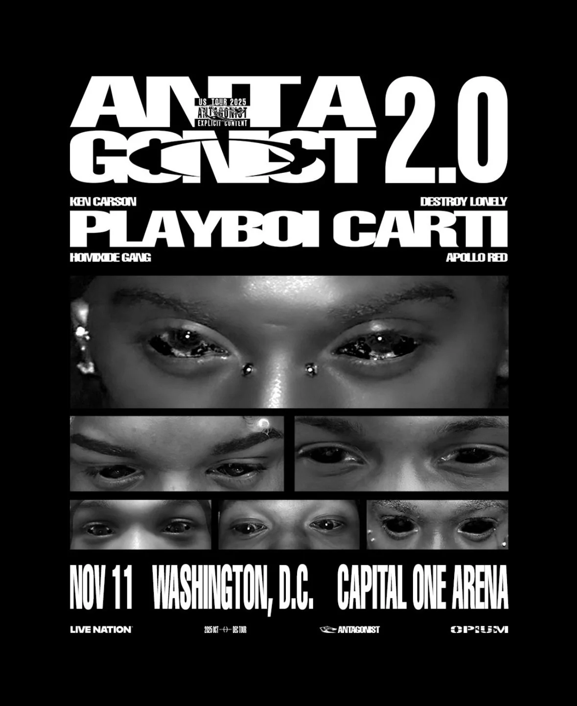 The tour kicks off on October 3 in Salt Lake City, Utah, stops in the DMV at Capital One Arena on November 11, and wraps up on December 1 in Atlanta, Georgia. The “2.0” branding signals a revival after Antagonist 1.0 was canceled, reportedly due to low ticket sales and the absence of new music to anchor the shows.
